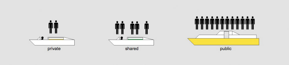 Le tre scelte disponibili di servizio trasferimento con barca sono: